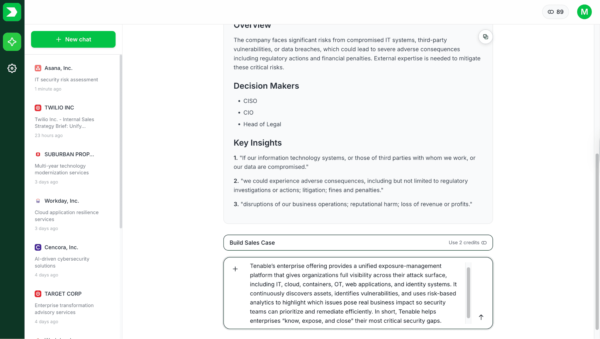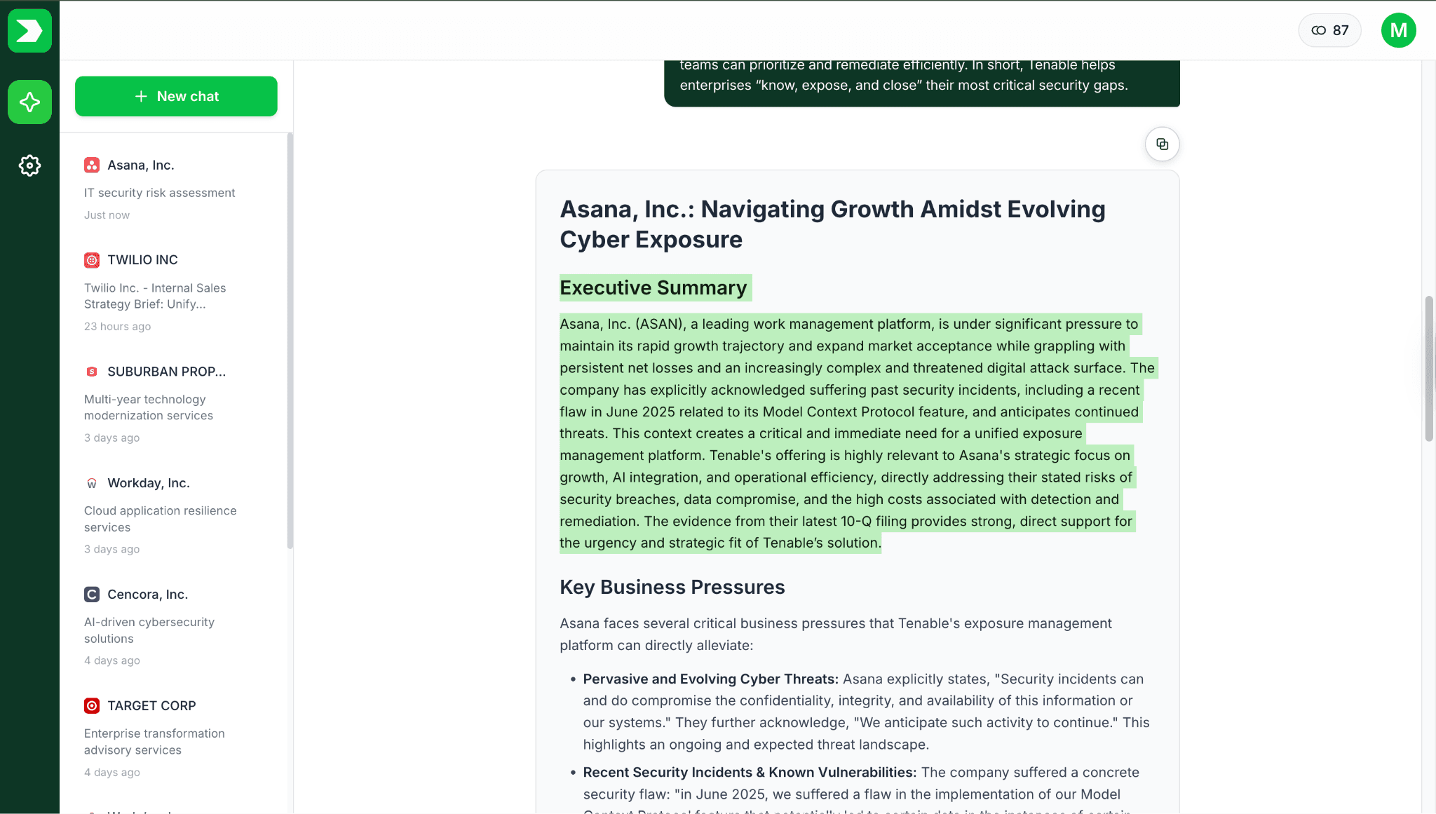 This guide shows the exact workflow I would use as an AE at Tenable to identify a live security exposure, build a complete sales case in minutes, and turn it into high-impact outreach.